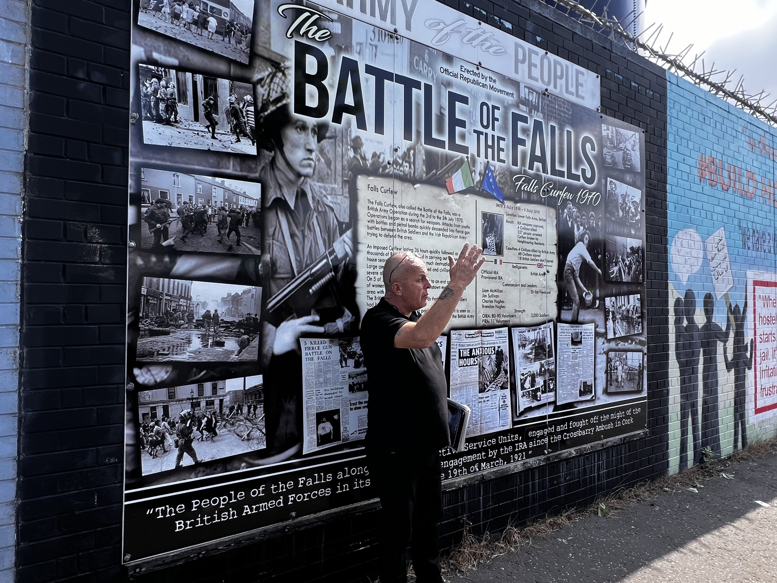 Daar in the falls road , vond op 14 augustus 1969 de Battle of the Falls, of Slag bij de Falls plaats. De slag werd voorafgegaan door dagen van rellen en gewelddadige confrontaties tussen de katholieke en protestantse gemeenschappen. De Britse troepen, die in 1969 naar Noord-Ierland waren gestuurd om de orde te handhaven, voerden een grote zoekactie uit in de Falls Road op zoek naar wapens en IRA-leden.